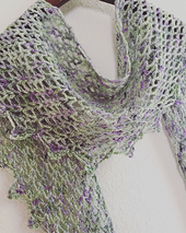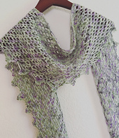 This scarf was designed for the yarn shop where I work, for the annual Fall yarn crawl in Texas. The color is “Lavender and Sage” and is a custom yarn color that was dyed just for the store by a very talented local yarn dyer, Savvy Skeins.