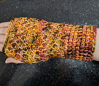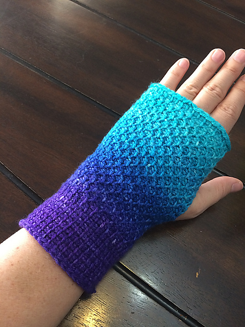 Arm warmers are worked flat then sewn so that a gradient yarn can be used easily.