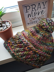 I strongly recommend using Malabrigo Rasta. It's extra bulky and makes a tight band. The colorway used in the picture was "Diana".