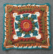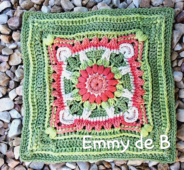The block is a 24 cm block worked in cotton. You can use any yarn you like for this block.