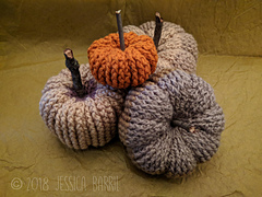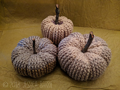 A taller pumpkin can be made by doing more repeats of Round 6 (small) or Round 9 (medium/large) and decreasing the top with fpdc2tog stitches as in the large pumpkin instructions.