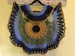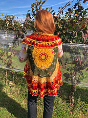 A Circle vest or bolero that immediately draws interest with its beautiful Sunflower motif in the center back! It could also be made in other floral colors to suit your style.