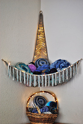 The Boho Corner Hammock is a fun, beautiful and functional storage solution. You can use it to hold your yarn stash, stuffed animals for your kids’ room, whatever you need to hang away!