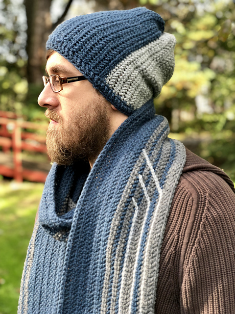 Measurement(s): Scarf should measure roughly 92 inches long. The highest point of the surface crochet should be about 22 inches from the end of the scarf. The colorwork section is about hald the width of the scarf, which is 8 inches total.