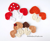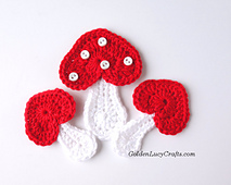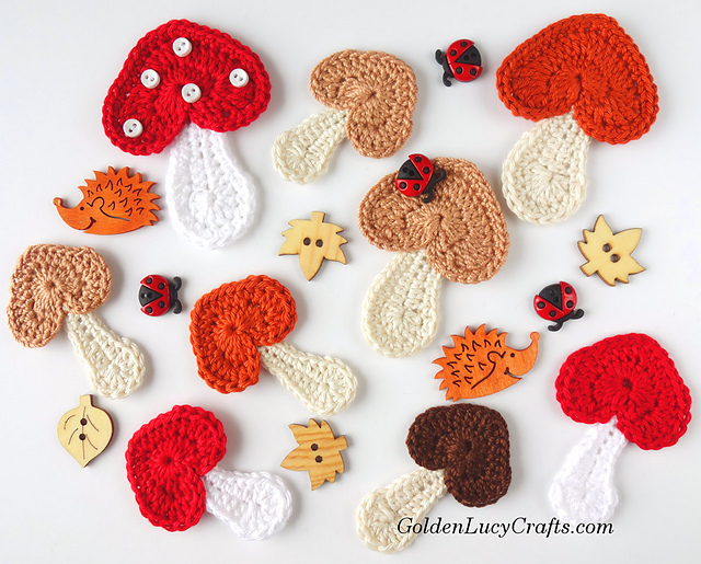 Free version of this pattern is available on my website: https://www.goldenlucycrafts.com/crochet-mushroom-applique/