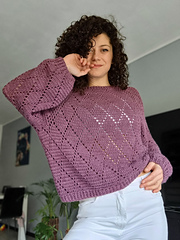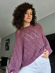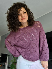 The My Precious Sweater Pattern is available in 6 sizes, from XS to 2XL. The model is 165 cm tall and wears a size Small.