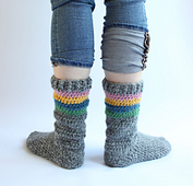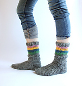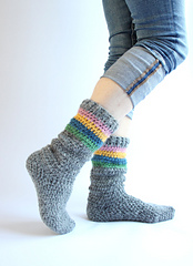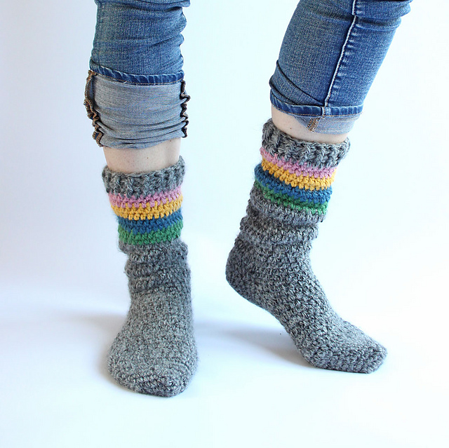 These cosy crochet socks are made out of aran weight yarn. They’ll be comfy in wellies but probably not in your posh shoes. Splodge some of that sticky stuff on the soles so that they turn into non-slip slipper socks. Anyway, I’ve gone for a PDF download pattern (available on my blog) and it has loads of info.