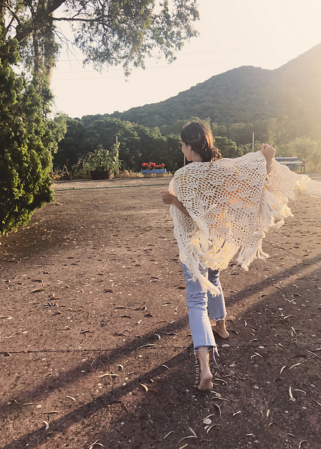 El chal se puede hacer con cualquier grosor de material, cambiará el aspecto, pero el patrón es igualmente válido.