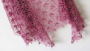 Damask rose is a triangular wrap worked in a delicate flower stitch.