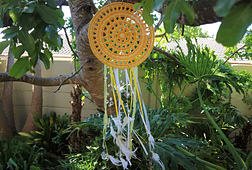 My little Sunshine Magic Catcher came to life in homage to the Native American Dream Catcher. All the parts of the Dream Catcher are connected to and represent the natural world. The circle of the hoop represents the Sun, Moon and cycle of life. The mandala at the centre is the web that traps the bad dreams and the feathers below guide the good dreams to the sleeper underneath. It is such a beautiful symbol of protection and respect that I began to wonder what else it could do.