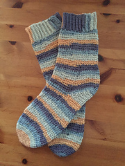 Extended double crochet stitches provide excellent stretch and the ribbed cuff is worked in rows of back loop only stitches for a snug finish around the ankle.