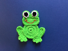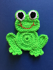 This is the pattern for a frog appliqué. **I do have this pattern available for free on my website if you would prefer that option. The link is down below, but I’ve made it available for people to download as well for $1 on Ravelry.**