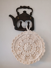 Crochet an elegant hot pad to set your holiday dishes on this year. This beautiful round hot pad is thick yet lacy protecting your table and counters from too-hot dishes.These are perfect for Christmas gift giving, and is sure to be an item that will get lots of "ohhs" and "ahhs" at holiday parties.