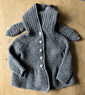Crocheted from the top down, this pattern creates the jacket in one piece, so the only sewing required is for the buttons and to attach the bunny ears.