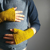 These simple mitts are the perfect unisex accessory for the in-between seasons. They are worked in the round, in one piece.