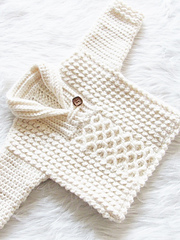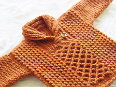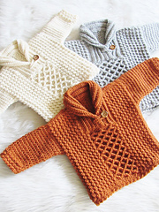 This sweater features a beautiful mix of textures and a shawl collar. This knit look sweater will be your new favorite boy pattern.
