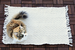 Welcome Home! This Rug knits up quick using three strands of worsted weight cotton held together as one. Both sophisticated and cozy, this rug is the perfect modern accessory for anywhere in your home; Welcome guests at the front door, cozy up your kitchen, or step out of the bath onto luxury.