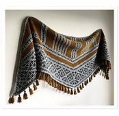 Lunae has a relatively shallow, elongated triangular shape. A prominent design feature are the vertical and horizontal mosaic bands that adorn the shawl. To achieve this look the