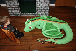 Kiefer is the project of projects. He began as a idea I had been thinking about for a while of a large detailed dragon made of yarn. He definitely fulfilled the large portion of my vision with dimensions of: tip of nose to tip of tail: 8ft 6in, tip of nose to curve of tail: 4ft 2in, wing span: 5ft 8in, height: 1ft 3in. The details are varied from muscle bulges and knuckles to actual eye balls in his sockets. I tried to reduce the number of small pieces that needed to be applied by making them one unit, reducing the sewing and tails to tuck in. I am so pleased with how he turned out. My biggest problem now is trying to figure out which of my boys I am going to give him to. Due to the extra time it took to complete this beast he is a little more expensive than my other patterns but he is so worth it. This pattern is 54 pages long with detailed instructions and many photos to help with creation of this "little" guy. As always, I am available for any questions.