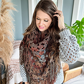 The Shimmer Triangle Shawl is beginner-friendly, using the treble granny cluster stitch, giving it a unique and eye-catching texture. Its oversized and chunky design creates a trendy accessory that will keep you warm and stylish all season long. Wrap it around your shoulders or drape it over your favourite outfit for an effortlessly chic look.