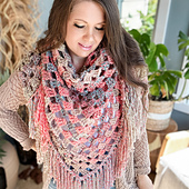 This pattern assumes that you already have basic crochet skills and are familiar with reading crochet patterns. It is not intended to teach you how to crochet or read a crochet pattern. It is solely an instructional guide to create the specific Shimmer Triangle Shawl as shown in the pictures and accompanying video tutorial.