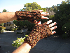 I tried to cut the fingers off my gloves once when I was in marching bad so I could finger my sax easier, but the gloves unraveled and ended up around my wrists. With this crochet version, I can shop wood, haul brush, or ride my hog without losing my grip. Well, if I had a hog...