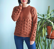 The body of the sweater is crocheted bottom up and in the round. It divides in front and back part at the bust. Sleeves are crocheted separately in the round.