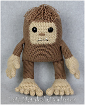 Bruno the Bigfoot loves to be cuddled, but he’s the champion at Hide and Seek. This finished pattern measures approximately 12 inches tall from the top of his head to the bottom of his big feet.
