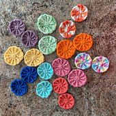 So my soda pop lid came off and slopped in my cup holder in the car and I thought wouldn't it be nice if I had a coaster in there to absorb all that moisture. Here is the result. Great stash buster and handy to boot. These are going on a charity sale for 50¢ each.