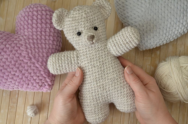 A simple teddy bear, perfect for little ones, easily made using the amigurumi technique and a thick, fluffy yarn that's perfect for toys. The pattern is really easy to follow and has few elements, making it a great project for amigurumi enthusiasts and beginners.