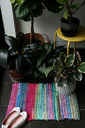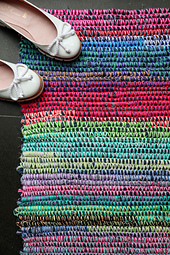 A great way to upcycle old jeans. The denim is cut into strips and used as a core to crochet around.