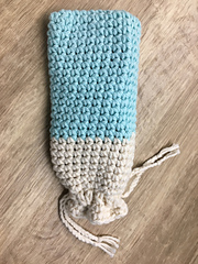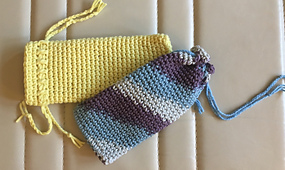 It's worked in one piece in the round and has a drawstring closure.