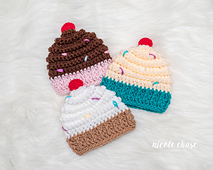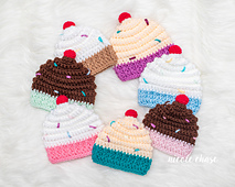 Crochet up these sweet cupcake hats for all ages! There are so many options for these hats: baby photo props, Halloween costumes, or just for fun! This pattern is worked continuously from the top down, with a small cherry added to the top.