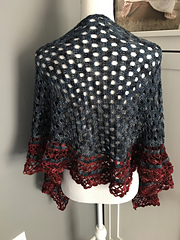 Add a touch of flair to your outfit with this colorful, crescent shaped shawl. Worked in fingering weight yarn, the main body of this shawl is worked from end to end with increases and decreases to make the crescent shape. The lacy border is worked back and forth along the curved edge once the main body is complete. Easily adjustable in length and depth.