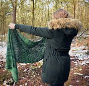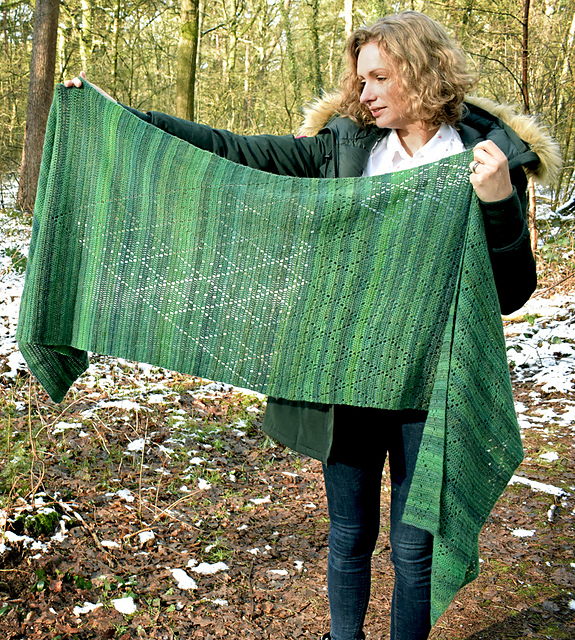 Do you recognize the shifting of the light between the seasons? When the trees create new leaves again, the light shifts from winterblue hues to soft green light. The shawl is inspired on this transformation from Winter to Spring. The pattern is part of the Poetry Collection, and as such, it is accompanied by a poem about the inspiration. You can read more about this collection [here][3].