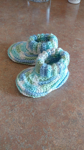 Keep little toes warm and cozy in these sweet little baby booties. Made with super soft baby yarn, which is anti-bacterial and hypoallergenic, they will be soft and gentle against baby’s delicate skin.