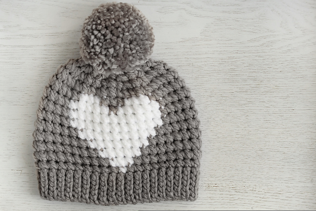 My most requested crochet pattern design is now available for instant download! This sweet little heart hat can be made in 4 sizes including baby, toddler, child, and adult. The brim looks like knit but is actually crochet and the heart design is achieved using a simple technique that allows the crochet stitches to line up perfectly! All you need is some bulky yarn and a 6.5mm crochet hook!