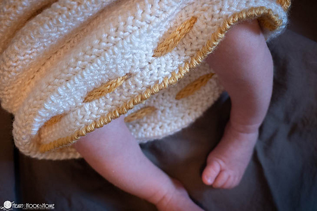 If you would like to use snaps for closure instead, simply omit the buttonholes by crocheting a regular hhdc in the ch-1, sk-1 space.