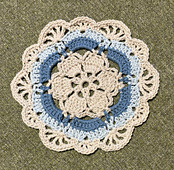 Sometimes you want a quick and easy project.This small mandala (8 rounds, 17 cm in diameter) is perfect for using up some scrapyarn. The pattern calls for Scheepjes Catona in 4 colors, but you can use any yarn in as many (or few) colors as you like. Please note that size and amount of yarn needed may be different.