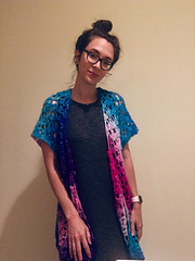 This kimono top adds a beautiful pop of color and lace texture to any outfit. The shell stitch that is used in this pattern is repetitive and simple to get the hang of, making this cover-up a quick and easy project. Length on this stretch fabric can easily be increased by blocking, or by crocheting additional rows. Crochet this beautiful and versatile beach cover up as a lovely gift, or for yourself!