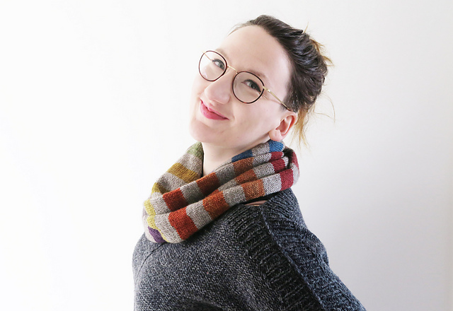 The Litmus Cowl is a basic recipe for creating a fun striped cowl. It's something I improvised to work on while I was travelling and I got so many questions about it, I thought I'd write up what I did.