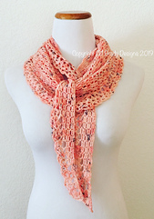 My Moon Garden scarf is a lightweight, shallow crescent-shaped scarf that is crocheted from side to side that starts with a few stitches and ends with a few stitches, with a pretty border on the bottom curved edge. Moon Garden is a quick one-skein project with easy-to-memorize row repeats that crochets up fast, so it’s a great scarf for gifting.