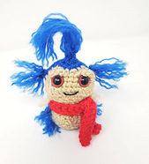 This adorable worm will end up around 5 1/2 inches tall if you count that crazy hair. He is everyone's favorite worm from the movie The Labyrinth.