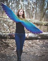 -- I am also experimenting with a new form of instructions that attempts to teach the reader the key construction aspects of the shawl (e.g., feathers, wing shape, etc.) so that they don't have to look down at the page frequently. It certainly isn't for everyone, but I hope some folks will find it useful!