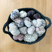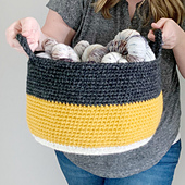 You will need:•approximately 200 yards of bulky or 315 yards of super bulky yarn (I used Red Heart Soft Essentials for the off white basket, Bernat Softee Chunky for the white, grey and black basket and Lion Brand Wool Ease Thick and Quick for the oatmeal, mustard and charcoal basket)