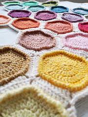 Gauge: 10.5cm across (the widest part of the hexagon) x 9cm (flat edge to flat edge)