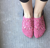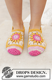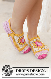 **Crocheted slippers with flower in square and stripes in DROPS Nepal. Size 35 to 43 = 5 to 10 1/2**