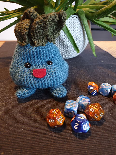 Who doesn’t love Pokemon? Well, here’s my Oddish inspired drawstring bag. Use it for dice, use it as a gift bag, use it to keep your crochet bits in – it’s entirely up to you!