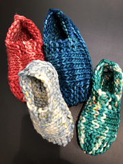 Easy beginner pattern makes super soft and fluffy slippers in no time. With just one ball of Lion Brand Wool-Ease Thick & Quick (or equivalent super bulky yarn) you can make any of the four sizes: Women’s Small (5-7),Women’s Medium (8-10), Men’s Medium (8-10), Men’s Large (11-13).