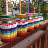 This simple jar cozy fits a 24-ounce wide mouth Ball Jar (6.88 in tall, 3.5 in outside diameter).
